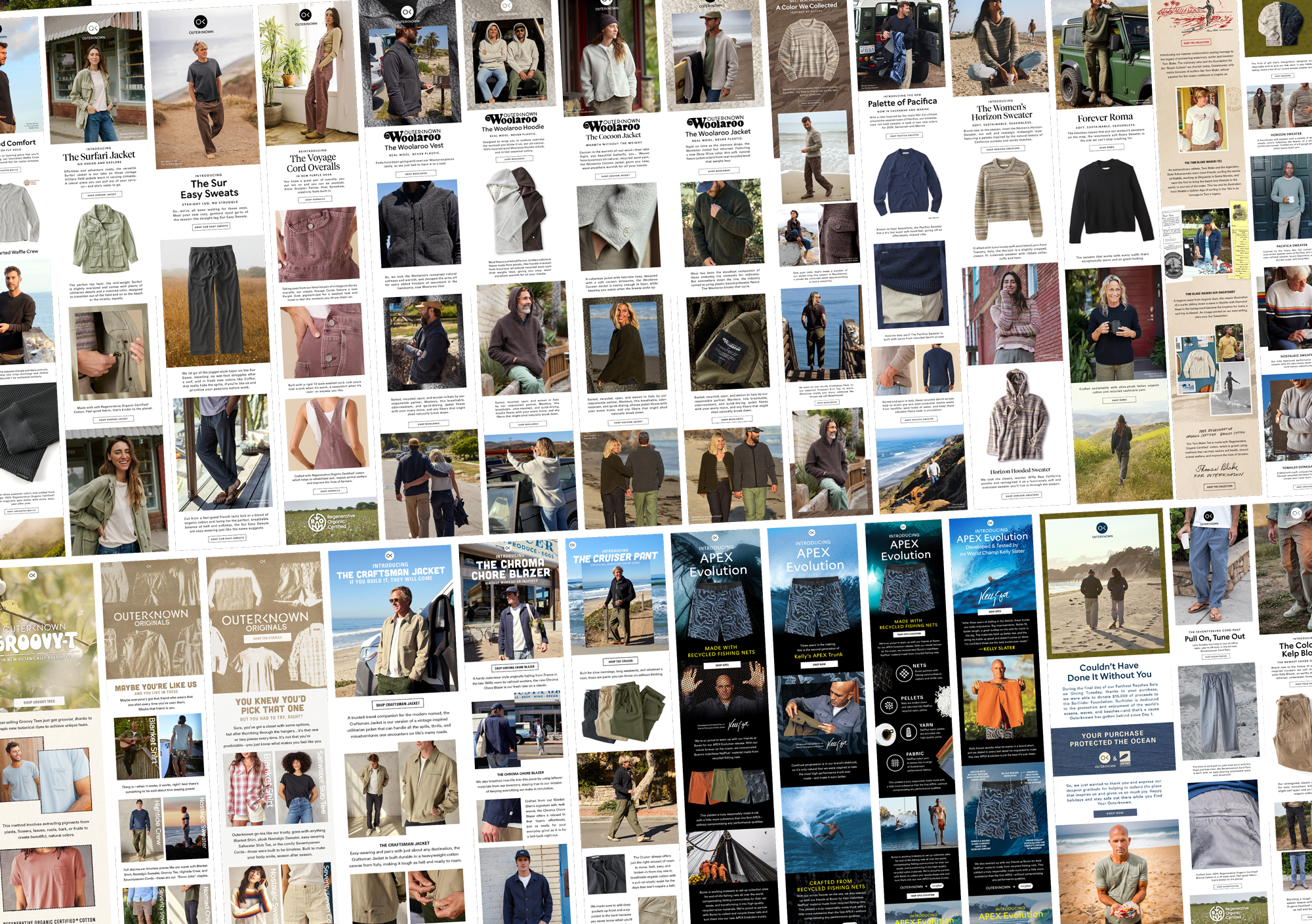 As a Senior Digital Designer at Outerknown, I’ve designed email campaigns, web assets, social media content, paid digital ads, and art directed photoshoots. My work has driven brand awareness and sale conversions while highlighting Outerknown’s commitment to sustainability through product storytelling.